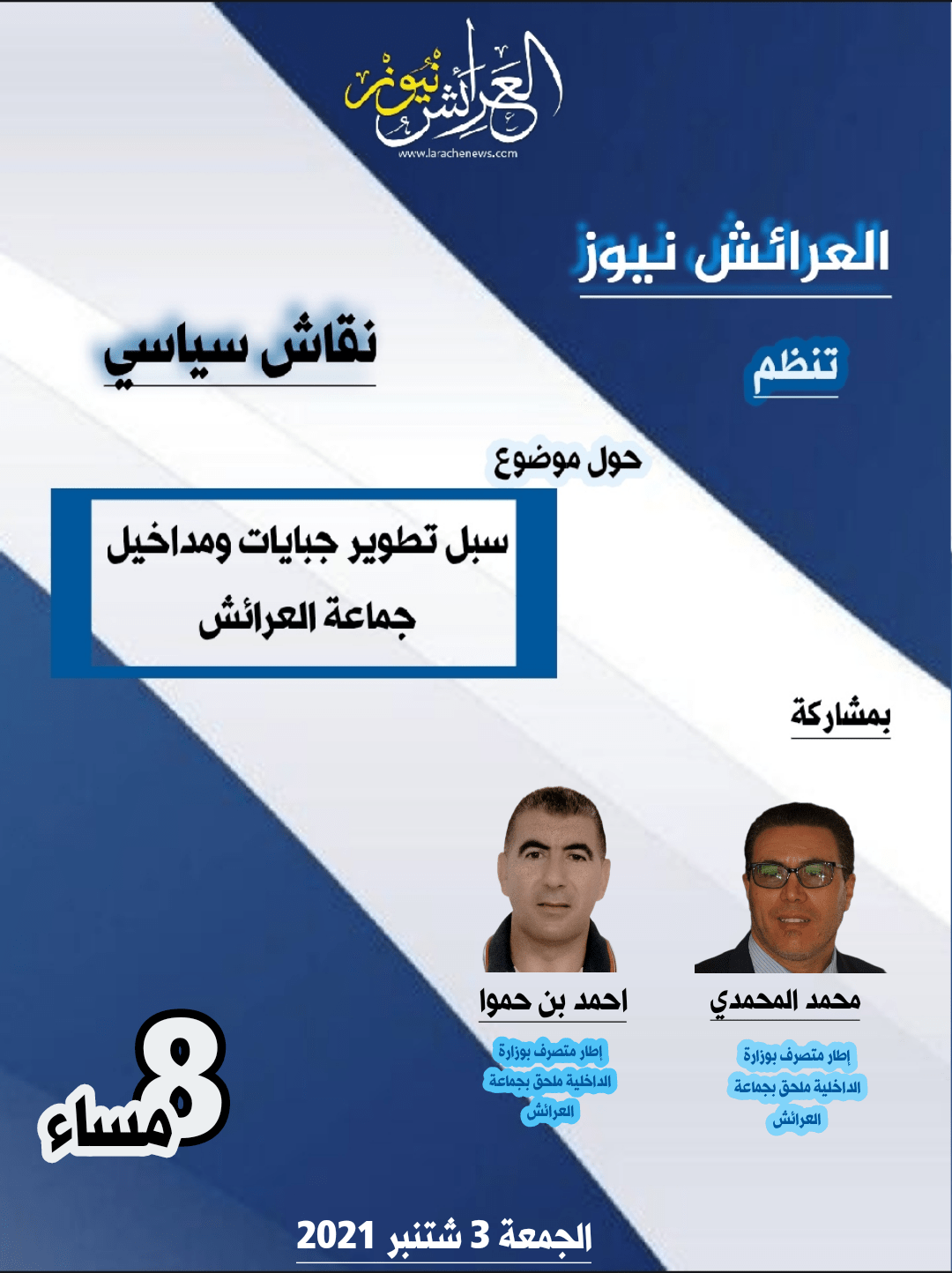 وفي نقاش اليوم الذي سيبث مباشرتا على صفحة فايسبوك العرائش نيوز على الساعة 8 مساء.