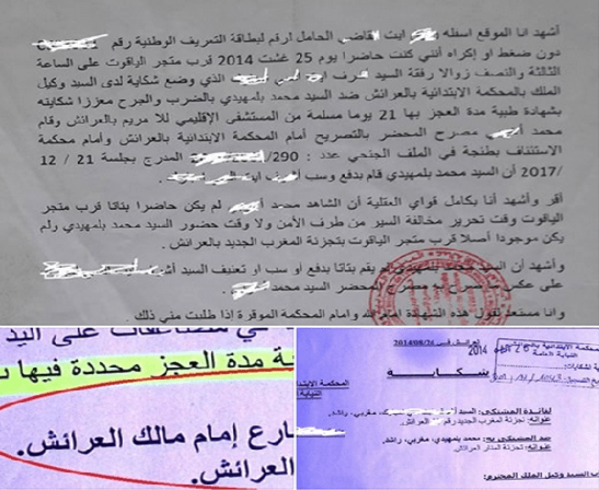 أن الشاهد الجديد صاحب الأشهاد هو أحد الشهود الرئيسيين رقم 1 الذي استعان به المتهم الثاني وعزز به شكايته المباشرة التي وجهها إلى السيد وكيل الملك بالمحكمة الابتدائية بالعرائش يوم 26 غشت 2014 تحت عدد 3101/14/1043 رفقة الشاهد الثاني الذي أدى اليمين وقدم شهادة بالزور أمام المحاكم ابتدائيا واستئنافيا ، الشاهد صاحب الإشهاد كان حاضرا يوم واقعة 25 غشت 2014 قرب متجر الياقوت بتجزئة المغرب الجديد في حين أن الشاهد الثاني ” م – أ – لم يكن حاضرا حسب مضمون وثيقة الإشهاد ولتقديم دلائل أخرى فإن الشاهد الثاني كان أجيرا عند الشاهد صاحب الأشهاد والالتزام وكان يتقاضى أجرا ضئيلا جدا ولكن بعد أدائه للشهادة وتضليل العدالة واستفادة المتهم الثاني ابن رئيس المجلس البلدي من هذه الشهادة تم تغيير مقر عمله ومحاباته والرفع من قيمة الأجر وتحويل مقر عمله إلى شارع الحسن الثاني بالعرائش وصار مسيرا للشركة حسب ما تم رصده بصفحته بالفايسبوك للشاهد الثاني “مضلل العدالة ” .