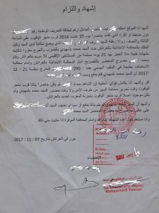 اثناء سريان الدعوة بمحكمة الاستئناف بطنجة تقدم الدفاع وقدم نسخة مصادق عليها من الاشهاد والالتزام ولم يتم استدعاء الشاهد الجديد في القضية وحين مواجهة المتهم الثاني بمضمون وثيقة الإشهاد اجاب بابتسامة وهو جد مطمئن كحال أبيه داخل ردهات المحاكم أن صاحب الاشهاد مختل وأنه لا يملك القدرات العقلية الكافية وسكت وهو يوجه نظره لرئيس الهيئة .