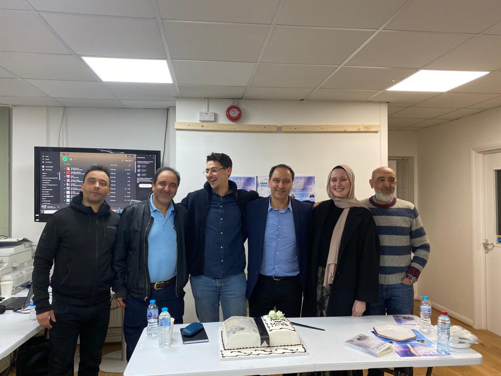 تخلل الحفل مداخلتان قيمتان للكاتبين الناقدين د. مصطفى العطار ود. العياشي الحبوش في حضور مميز لأبناء الجالية المغربية والعربية. تم اختتام الحفل بتقديم هدية للكاتب العصامي على شكل كعكة ضخمة تجسد صورة كتاب “عابر إلى الضباب” .