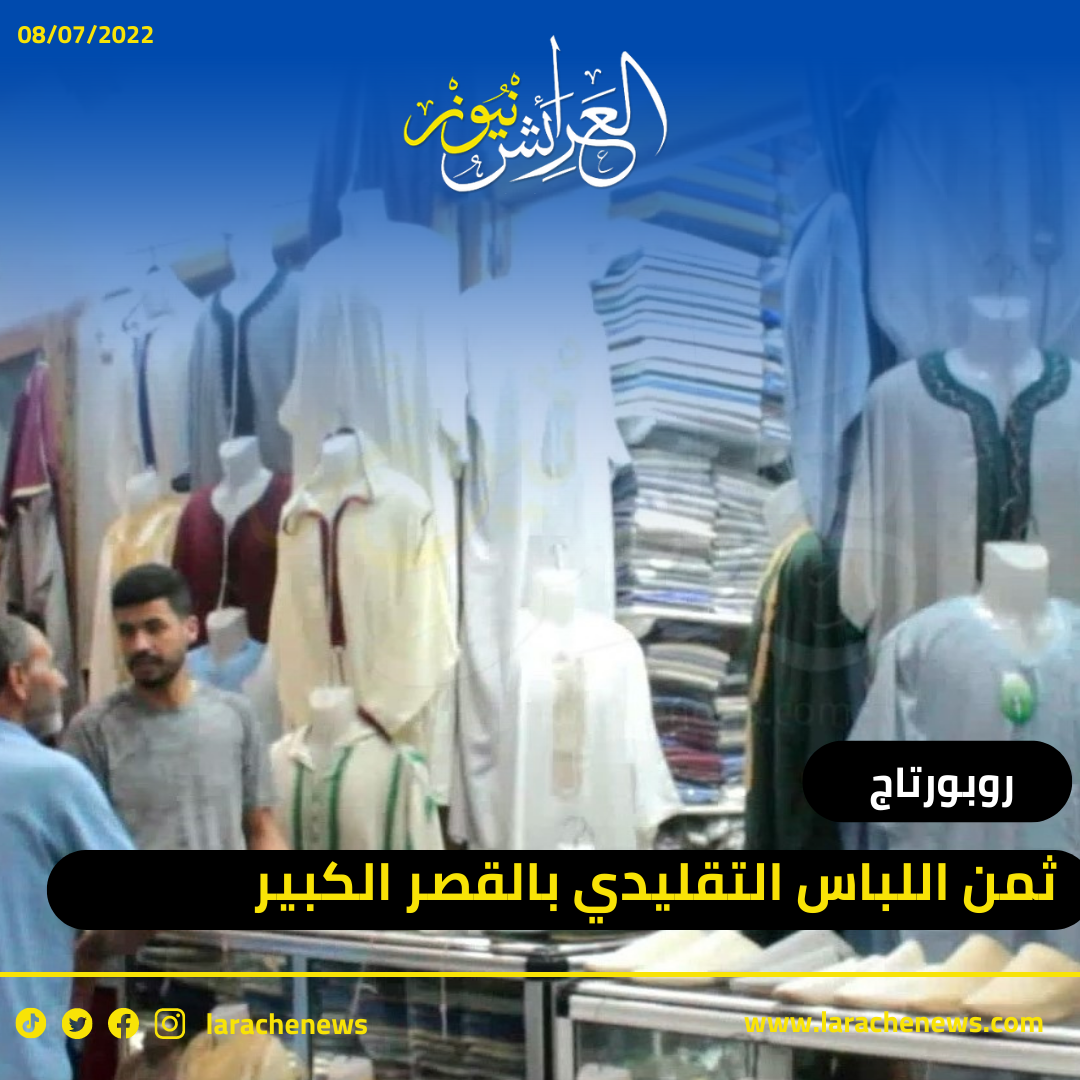 العرائش نيوز : روبورتاج مع أحد تجار الملابس التقليدية الرجالية بالقصر الكبير بمناسبة العيدحواراتمستجدات هيئة التحرير نشر في 8 يوليو 2022 الساعة 20 و 52 دقيقة شارك FacebookTwitterWhatsAppطباعةLinkedinTelegramالبريد الإلكترونيالعرائش نيوز : شارك FacebookTwitterWhatsAppطباعةLinkedinTelegramالبريد الإلكتروني