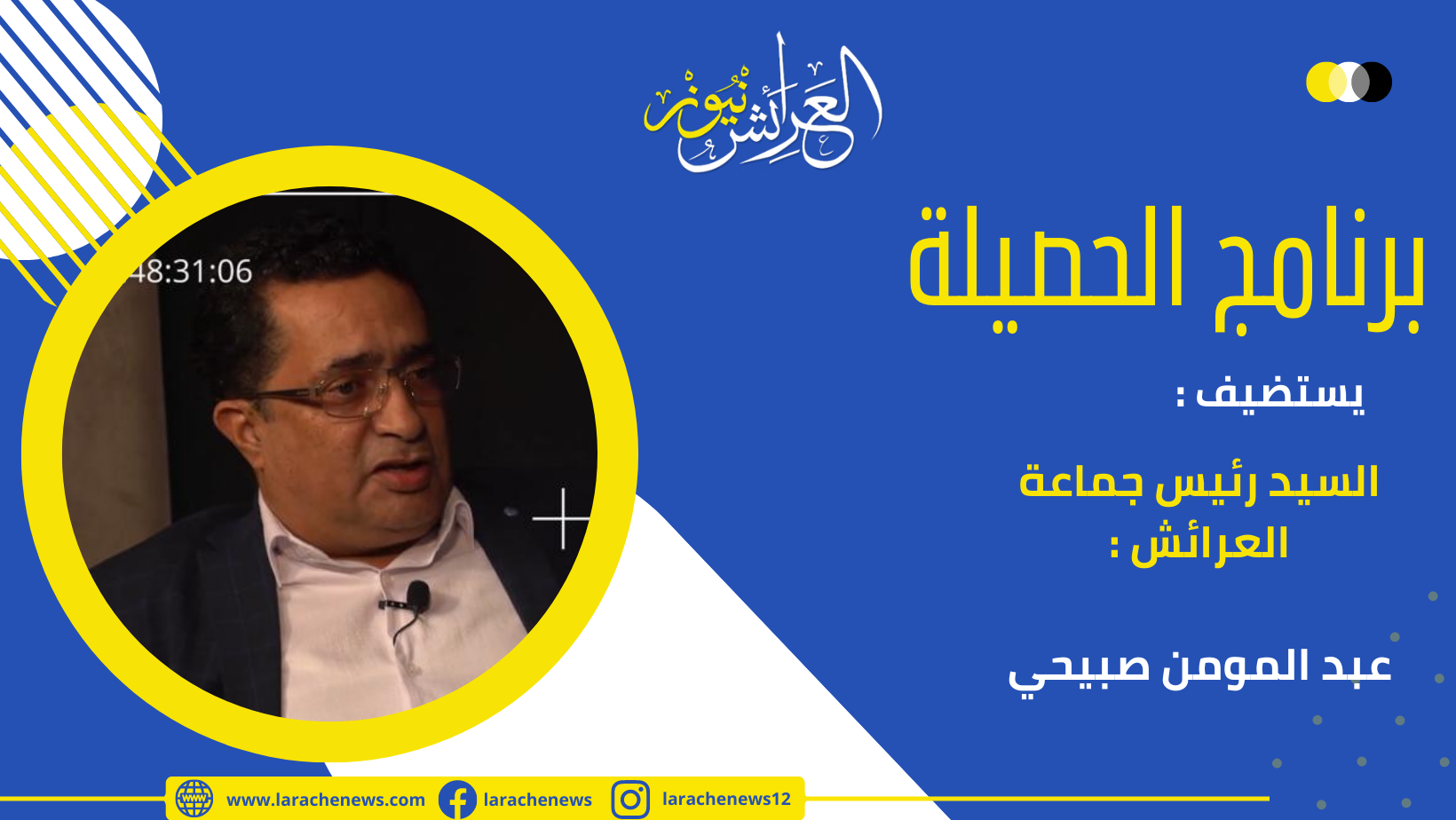 في إطار تتبع ومواكبة العرائش نيوز لقضايا الشأن السياسي الإقليمي، وتتمة لبرامجها السياسية التي انطلقت شهر شتنبر من السنة الفارطة، تواكب العرائش نيوز من جديد حصيلة سنة من التدبير السياسية للمجالس المنتخبة منذ شهر شتنبر 2021، وفي أولى حلقات برنامج الحصيلة نستضيف رئيس جماعة العرائش السيد عبد المومن صبيحي:
