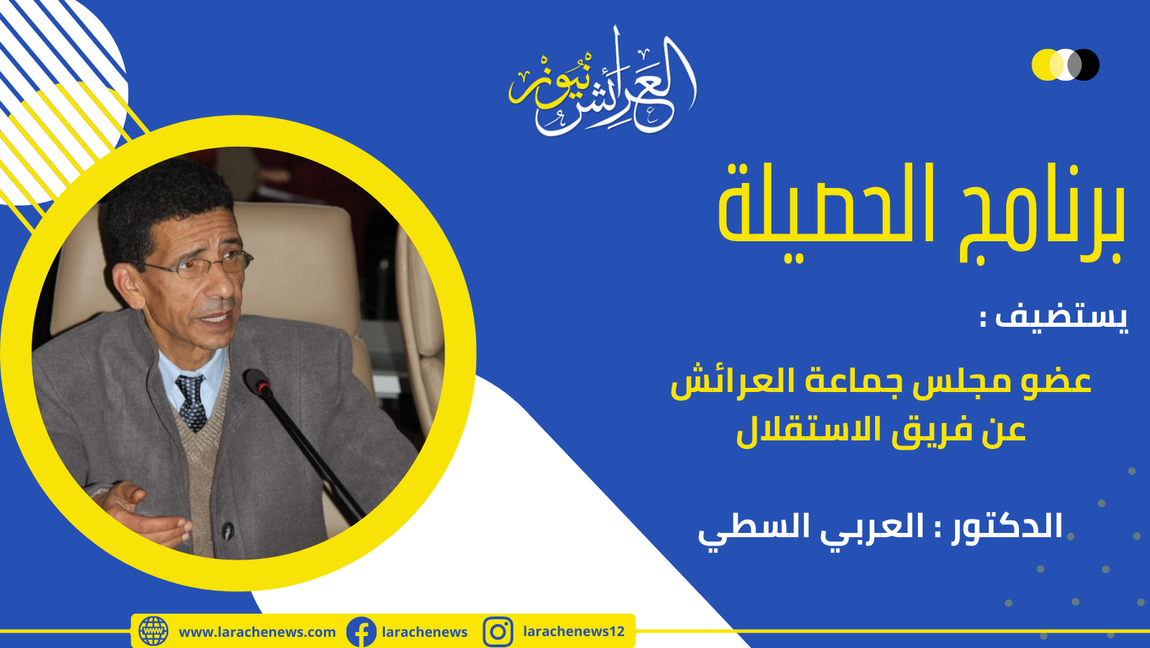 في إطار تتبع ومواكبة العرائش نيوز لقضايا الشأن السياسي الإقليمي، وتتمة لبرامجها السياسية التي انطلقت شهر شتنبر من السنة الفارطة، تواكب العرائش نيوز من جديد حصيلة سنة من التدبير السياسية للمجالس المنتخبة منذ شهر شتنبر 2021، وفي رابع حلقات برنامج الحصيلة نستضيف الدكتور العربي السطي عن حزب الاستقلال ، و منسق فريق المعارضة سابقا والملتحق حديثا بأغلبية مجلس جماعة العرائش، نناقش معه حصيلة سنة من أداء المعارضة وظروف لاتحاق فريق الاستقلال بالأغلبية المسيرة: