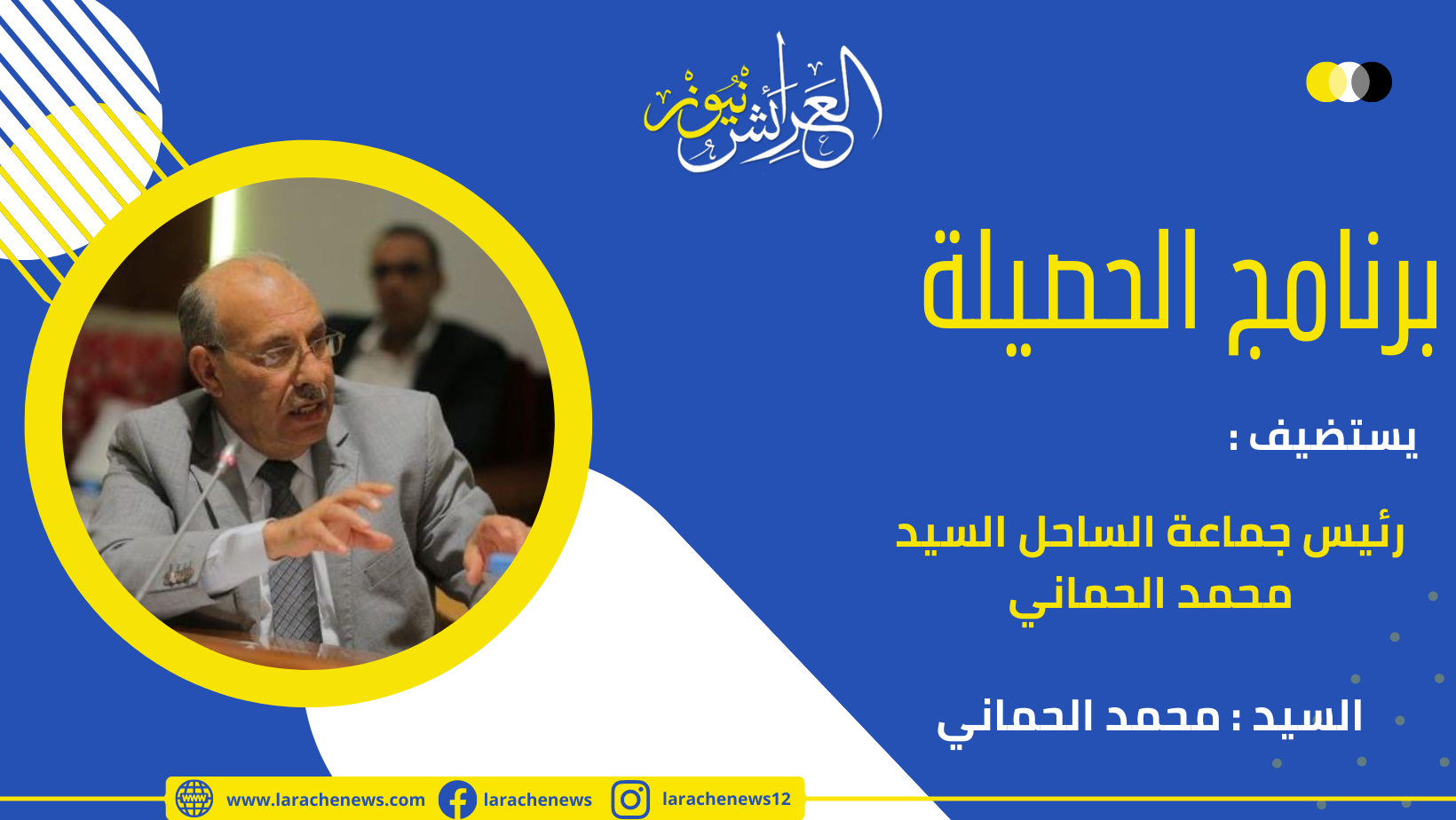 في إطار تتبع ومواكبة العرائش نيوز لقضايا الشأن السياسي الإقليمي، وتتمة لبرامجها السياسية التي انطلقت شهر شتنبر من السنة الفارطة، تواكب العرائش نيوز من جديد حصيلة سنة من التدبير السياسية للمجالس المنتخبة منذ شهر شتنبر 2021، وفي سادس حلقات برنامج الحصيلة نستضيف برلماني ورئيس جماعة الساحل السيد محمد الحماني ننقاش معه حصيلة سنة من ترافعه عن اقليم العرائش وسنة من تدبيره لجماعة الساحل :