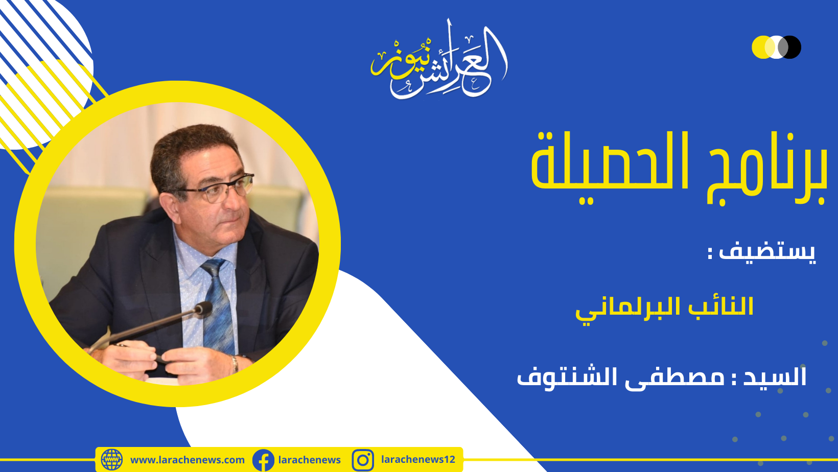 استئنافا لبرنامج الحصيلة التي تواكب فيه العرائش نيوز قضايا الشأن السياسي الإقليمي، وتتمة لبرامجها السياسية التي انطلقت شهر شتنبر من السنة الفارطة، تواكب العرائش نيوز من جديد حصيلة سنة من التدبير السياسية للمجالس المنتخبة منذ شهر شتنبر 2021، وفي سابع حلقات برنامج الحصيلة نستضيف النائب البرلماني عن حزب الإستقلال السيد مصطفى الشنتوف ننقاش معه حصيلة سنة من ترافعه بقبة البرلمان ومجموعة من القضايا التي تهم إقليم العرائش: