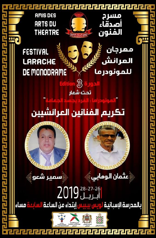 مسرح أصدقاء الفنون في اطار تنظيمه لمهرجان العرائش للمونودراما في دورته الثالثة يلتفت للأسماء المسرحية العرائشية حيث يكرم في هذه الدورة الفنانين عثمان الوهابي و سمير شعو وتأتي دورة هذه السنة تحت شعار: “المونودراما الفرد يجسد الجماعة ” ،