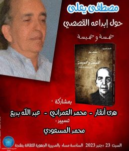 شارك الفنان حسن البراق في اللقاء الأدبي حول إبداع القاص الدكتور مصطفى يعلى” خمسة وخميسة”، والمنظم من طرف منتدى الفكر والثقافة والإبداع، مساء السبت 23 دجنبر الجاري بالمديرية الجهوية للثقافة بطنجة , بمشاركة دة. هدى أنقار ود. محمد العمراني ود. عبد الله بديع.