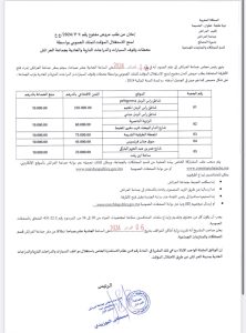 وعليه ينهي رئيس مجلس جماعة العرائش إلى علم العموم أنه في 12 فبراير 2024 على الساعة الحادية عشر صباحا، سيتم بمقر جماعة العرائش إجراء فتح الأظرفة المتعلقة بطلب عروض أثمان مفتوح لمنح الاستغلال المؤقت للملك العمومي بواسطة محطات وقوف السيارات والدراجات النارية و العادية بتراب الجماعة . على شكل حصص كما هو مبين في الجدول أسفله، ولمدة السنة المالية 2024.