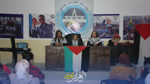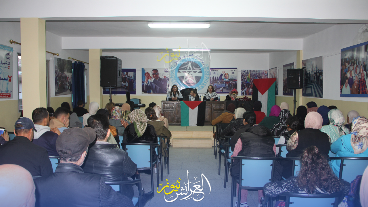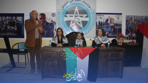 الحفل افتتح بالتذكير بالسياق العام الذي يأتي به يوم 8 مارس من تحصين للمكتسبات وحقوق المرأة سواء العاملة أو الموظفة أو ربة البيت، والتطرق لموضوع المرأة الفلسطينة التي تعيش انتهاكات خطيرة ومس لكرامتها أمام مرآى العالم وفي ضرب صارخ لجميع المعاهدات الدولية دون تحرك يذكر لجميع الدول.
