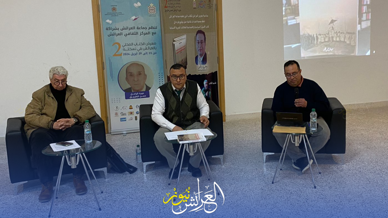 في إطار أنشطة معرض الكتاب الثاني الذي تنظمه جماعة العرائش بشراكة مع المركز الثقافي بالعرائش والذي اتخذ له اسم رائد الادب المغربي الراحل “حسن الطريبق” ، نظمت جمعية فضاءات ثقافية امس الجمعة 26 ابريل الجاري ، حفل توقيع لكتاب “الأصول السياسية والاجتماعية للعلاقات المغربية الإسبانية 1875-1912” للأستاذ يوسف أكمير .