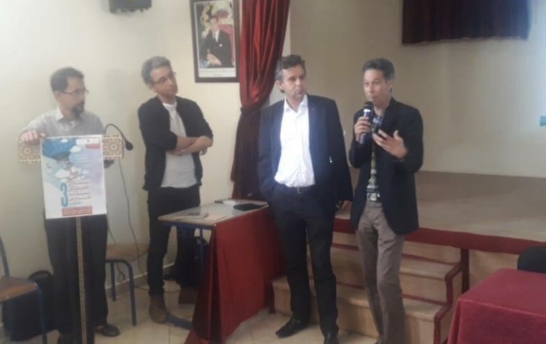 في إطار فعاليات الدورة الثالثة للملتقى الاقليمي لسينما المدارس المنظم من طرف المديرية الاقليمية للتربية والتكوين بالعرائش يوم الثلاثاء 21 ماي 2019 بقاعة الأنشطة بثانوية ماء العينين التأهيلية ، وتفعيلا لأدوار الحياة المدرسية ، تم تنفيذ برنامج الملتقى الذي افتتح بكلمة للمديرية ألقاها نيابة عن السيد المدير الإقليمي رئيس مكتب الأنشطة الاستاذ محمد عابد ، حيث أكد على أهمية الصورة في العملية التعليمية .