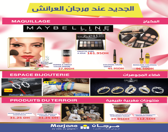 مع بداية الموسم الصيفي، مرجان جاء بالجديد لإرضاء زبائنه: رواق خاص بالمجوهرات، لتقديمها هدايا أو إرضاء للنفس. قطع جذابة و بأثمنة مناسبة، إضافة إلى فضاء خاص بالماكياج يعرض منتوجات عالمية و أخرى مغربية طبيعية، لك الاختيار سيدتي، فلا تترددي في زيارة أروقتنا و الاطلاع على كل ما هو جديد…