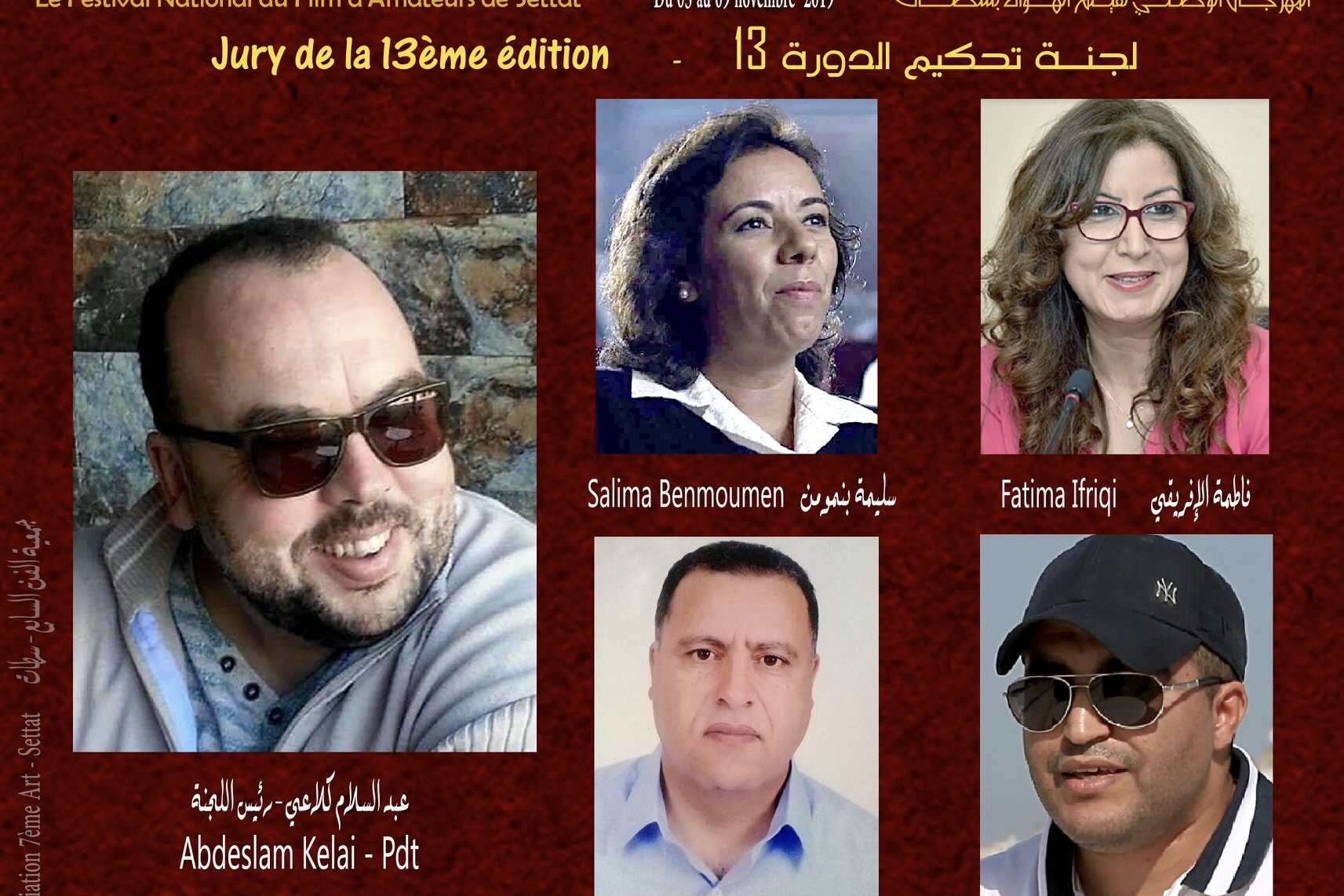 – وتتضمن هذه الدورة مجموعة من الفقرات لعل أبرزها المسابقة الرسمية التي يترأس لجنة تحكيمها المخرج السينمائي المغربي عبد السلام كلاعي بالإضافة الى كل من الأعضاء: