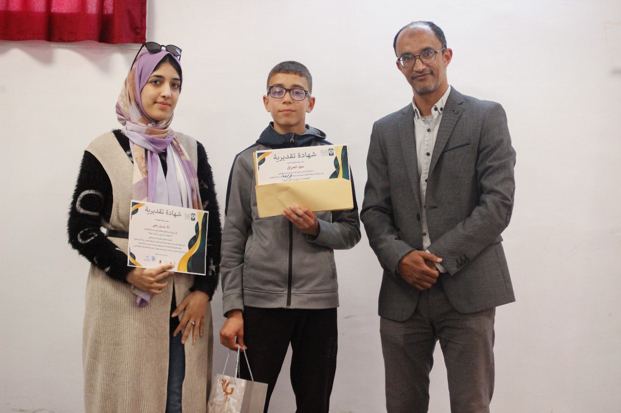 - فئة التعليم الثانوي الإعدادي: التلميذة مريم السلموني (الثالثة إعدادي، ثانوية وادي المخازن الإعدادية – العرائش).