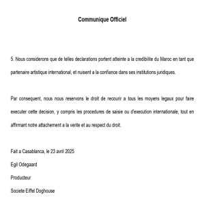 في تطوّر جديد لقضية النزاع السينمائي حول مشروع الفيلم الطويل “أبناء الأرض الجديدة”، أصدر المنتج النرويجي إيغيل أوديغارد، مالك شركة الإنتاج السينمائي Evil Doghouse AS، بيانًا حازمًا ردّ فيه على التصريحات الأخيرة للمخرجة المغربية نرجس النجار، مديرة الخزانة السنمائية المغربية، والتي شكّكت في شرعية الحكم التحكيمي الصادر ضدها من محكمة التحكيم بالدار البيضاء.