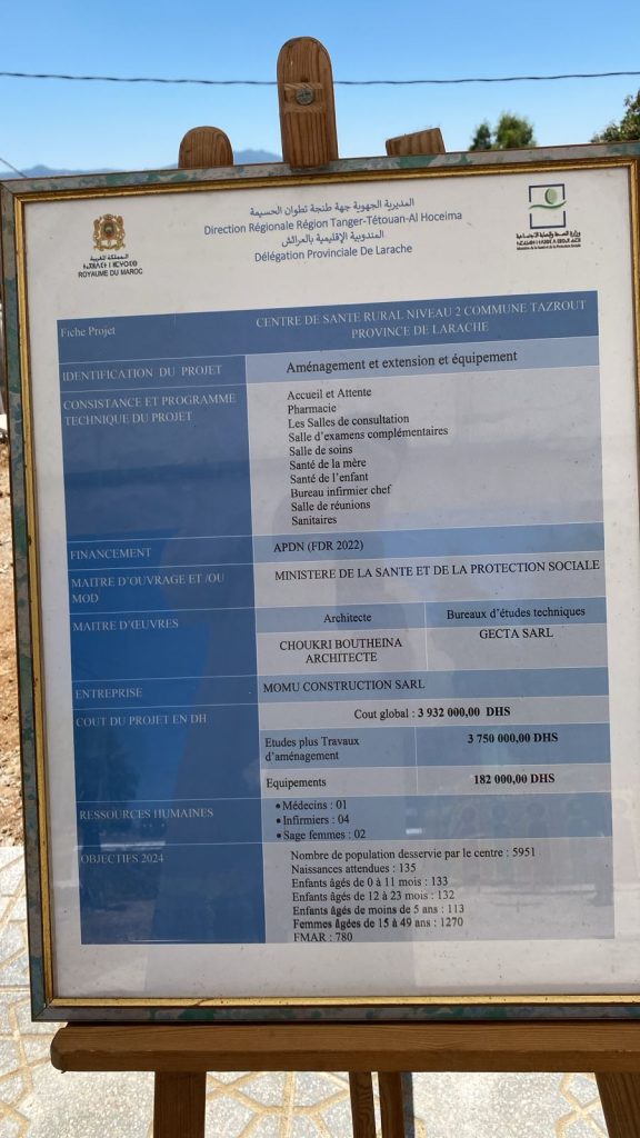 المستوصف الجديد، الذي بلغت تكلفته 3.9 مليون درهم، هو ثمرة شراكة بين وزارة الصحة و”MOMU CONSTRUCTION SARL”، بتصميم المهندسة “شوقري بثينة” ودراسات مكتب “GECTA SARL”.