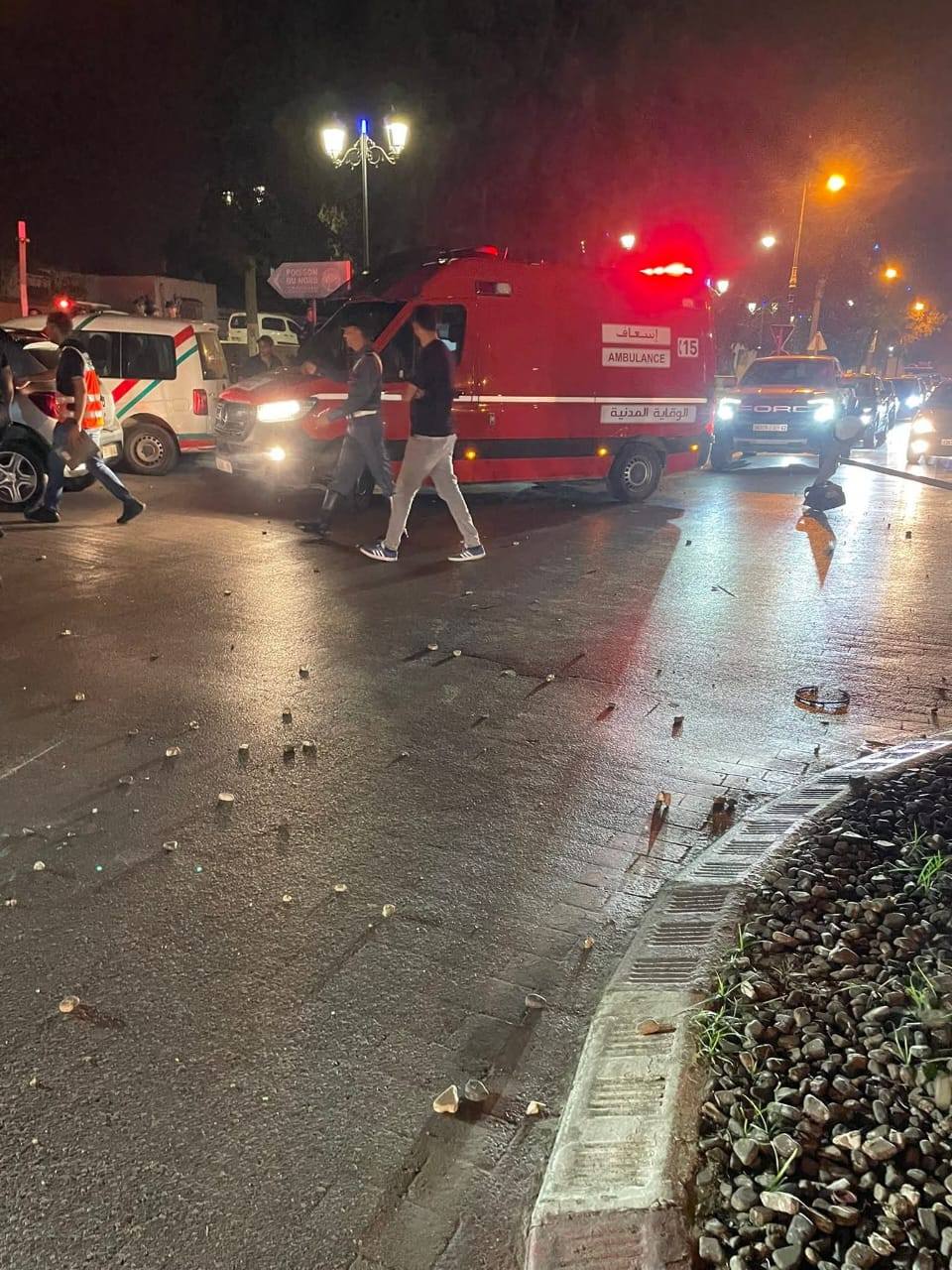 وخلف الحادث إصابة سائق دراجة هوائية كان على مقربة من مكان الاصطدام، حيث جرى نقله على وجه السرعة إلى قسم المستعجلات بمدينة طنجة لتلقي العلاجات الضرورية، في حين تسببت الحادثة في أضرار مادية جسيمة بالسيارة والمدار.