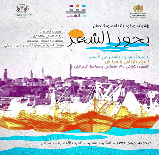 وتقام هذه التظاهرة بإشراف وزارة الثقافة والاتصال، وبتعاون مع بيت الشعر في المغرب والقسم الثقافي والاجتماعي بجماعة العرائش والمركز الثقافي بالمدينة، بينما تشهد التظاهرة إقامة مكتبة شاطئية وأمسيات شعرية وورشات في الحكي والتشكيل ومسابقات في إلقاء الشعر، إلى جانب “أمسية الأطلال” في المسرح الروماني بموقع “ليكسوس” التاريخي.