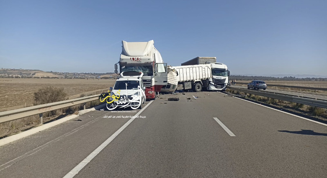 هذا وقد نتج عن الحادث ثلاث اصابات احداهما خطيرة تم نقلهم جميها نحو المستشفى عبر سيارة الاسعاف ، هذا وقد تسبب الحادث في ربكة كبيرة على مستوى الطريق السيار بالعرائش.