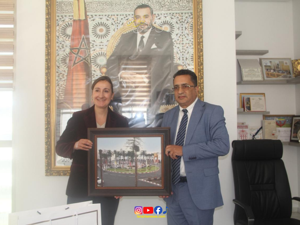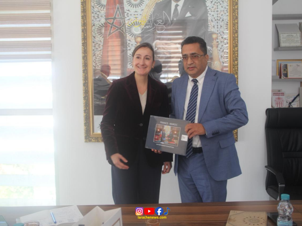 استقبل السيد عبد المومن الصبيحي رئيس جماعة العرائش مرفوقا بمجموعة من اعضاء مجلس الجماعة و السيد مدير المصالح، السيدة ستيفاني بوتيبون القنصل العام الفرنسي بطنجة، هذه الزياة التي استمع فيها الوفد الممثل لجماعة العرائش الى كلمة السيدة القنصلة التي عبرت عن بالغ اهتمامها بمدينة العرائش و رغبتها بالتعرف على المدينة من الناحية التاريخية و الاجتماعية و الثقافية، في نفس السياق عبر السيد عبد المومن الصبيحي عن امتنانه للسيدة القنصلة على الزيارة، مبرزا امامها مؤهلات مدينة العرائش ، كما استعرض المسار التنموي الذي تعرفه المدينة، وانفتاحها على التجارب العالمية في مختلف المجالات.