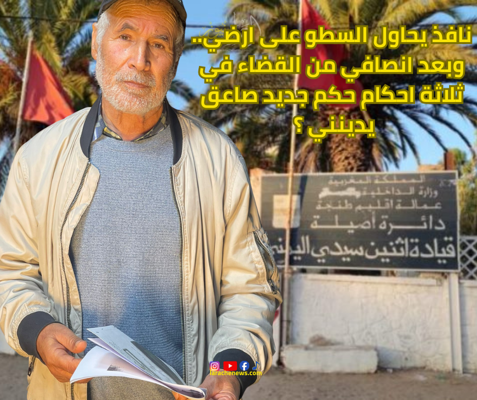 يشتكي السيد المصطفى اكحاسلو من تسلط احد النافذين بمنطقة سيدي اليمني هذا الاخير يهدد ملكية ارضه بادعاءات مزعومة ، وبعد انصافه في ثلاثة احكام قضائية ، فوجئ قبل شهر بحكم قضائي جديد لفائدة خصمه يجرمه و يدينه بالسجن الموقوف التنفيذ و الغرامة بناء على معطيات غير مفهومة من قبله كما يحكي في الفيديو التالي: