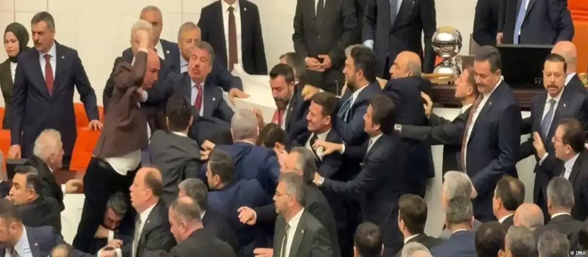 اندلعت اشتباكات بالأيدي، الأربعاء 11 فبراير 2026، داخل البرلمان التركي خلال جلسة أداء اليمين لوزير العدل التركي أكين غورلك ووزير آخر، ما أسفر عن إصابة نائب من حزب الشعب الجمهوري التركي في أنفه، بالتزامن مع اعتراضات نيابية على إجراءات الجلسة.