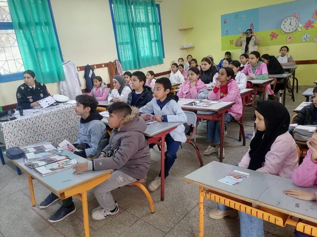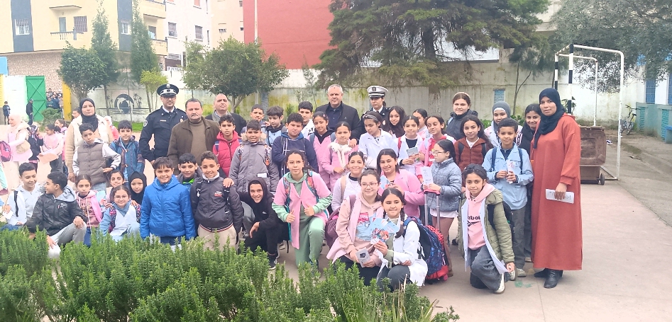 في إطار اليوم الوطني للسلامة الطرقية: نشاط تحسيسي بمدرسة معاذ بن جبل لفائدة التلاميذ بحضور الأمن الوطني