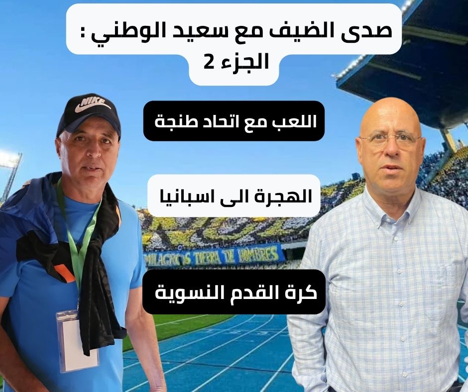 نلتقي في الجزء الثاني من صدى الضيف لنستكمل مسيرة أحد ابرز لاعبي كرة القدم بمدينة العرائش سعيد الوطني، نرصد رحلته الى اتحاد طنجة، قصة الإصابة التي اثرت على مشواره الكروي، الهجرة الى اسبانيا، وتجربته في تأطير كرة القدم النسوية بالعرائش :