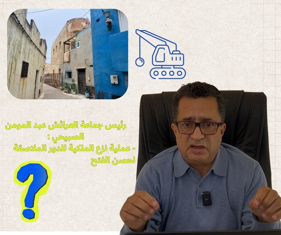 من النقاط الرئيسية التي تم تداولها خلال دورة مجلس جماعة العرائش الاستثنائية لشهر ابريل الجاري، نقطة نزع الملكية لمجموعة من الدور الملاصقة لبناية حصن الفتح، وحول هذه النقطة وضح السيد الرئيس المساطر التي ستسلك مع ساكنة هذه الدور: