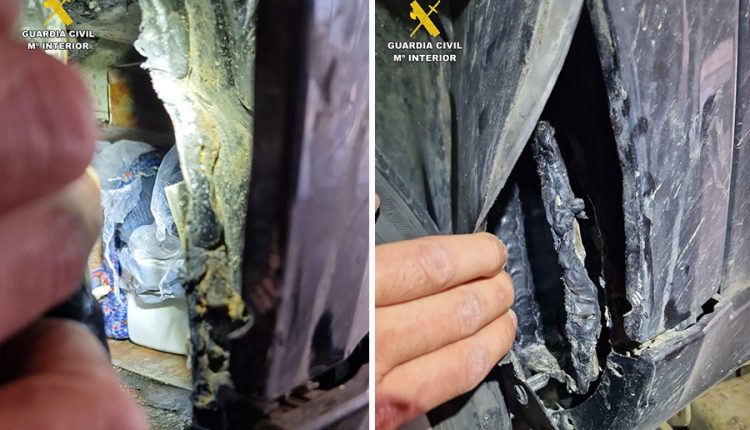 بتفتيش المركبة بدقة، عُثر على مخبأ سري داخل هيكلها يحتوي على أكثر من 28 كيلوغرامًا من مخدر الحشيش، كانت مخبأة بإحكام.