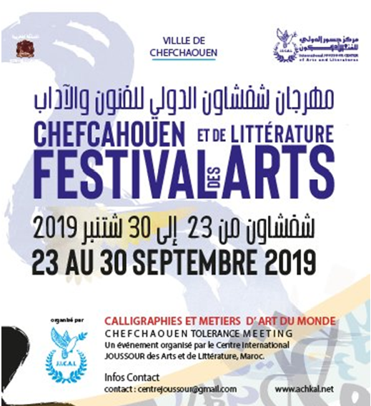 تحت شعار “الفن والمهن الأصيلة، تراث إنساني عالمي”، ينظم مركز جسور الدولي للفنون والآداب بمدينة شفشاون، الدورة الخامسة من المهرجان الدولي للتسامح للفنون و الآداب و ذلك من 23 إلى غاية 30 شتنبر الجاري.