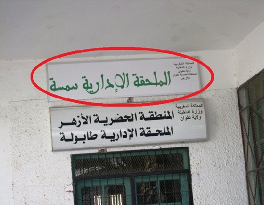 زيدت على كل هذا النصب على المواطنين بوضع لافتة باللون الأبيض فوق لافتة مقاطعة “طابولة” وقد كتب عليها مقاطعة “سمسة” كما هي فالصورة، وهي في الحقيقة مصيدة للمواطنين الدين يقطعون مسافات طويلة وفي الأخير يتفاجئون بأن المقاطعة المعنية قد تم ترحيلها إلى مكانها الجديد مند أشهر.