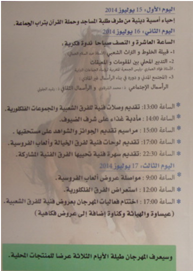 برنامجْ الدّورة الثّانية منْ مهرجانْ الفنُون الشّعبية بجماعَة ريصَانة الجنوبيّة
