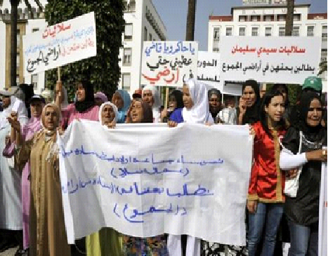 المكتب التنفيذي للرابطة المغربية للمواطنة وحقوق الإنسان يدين التدخل الهمجي لقائد أحواز القنيطرة ضد النساء السلاليات المعتصمات بدعم ومؤازرة الرابطة، الشيء الذي خلف رعبا حقيقيا لدى النساء السلاليات وكذا إصابة إحدى النساء (الطاهرة) إصابة بليغة في الرأس نقلت على إثرها لمستشفى الإدريسي بالقنيطرة، وحيث أن الحركة الاحتجاجية للنساء السلاليات بالمغرب انطلقت من الجماعة السلالية الحدادة ورغم ذلك فالنساء وبعد أزيد من 10 سنوات من النضال وتقديم العرائض وكافة الوسائل الاحتجاجية لازلنا محرومات من الاستفادة من حقهن في الأرض والسكن ولذلك فالمكتب التنفيذي للرابطة المغربية للمواطنة وحقوق الانسان يؤكد: