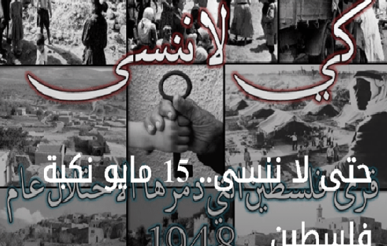 رغم تركيز كل وسائل الإعلام العالمية والوطنية هذه الأيام العصيبة على فيروس كورونا الذي يبقى موضوعه وأسبابه مطروحة للنقاش .فرغم كل هذا التهويل والتخويف، فإننا كأحرار العالم نذكر المنتظم الدولي وجميع شعوب العالم، أن يوم 15 ماي من كل عام هي ذكرى سنوية تُذكر الجميع بجريمة اغتصاب الشعب الفلسطيني واقتلاعه من أرضه بقوة واستبداله بمجموعة بشرية تم تجميعها من كل بقاع العالم، من طرف الصهيونية الشيطانية و الاستكبار العالمي المتوحش، من أجل اغتصاب أرض لها موقع استراتيجي مهم في المنطقة يتماشى مع المخطط الامبريالي الرامي إلى التحكم في التجارة العالمية، والاستفادة من الخيارات الباطنبة التي تزخر بها منطقة الشرق الأوسط خاصة.